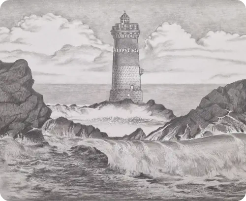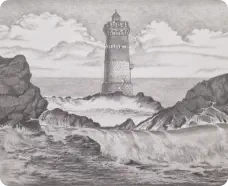 „Man nennt diesen Turm oft den Bruder von La Jument, doch er hat eine dunklere Seele. Während La Jument gegen die offene Wucht des Atlantiks kämpft, muss Pierres Noires die Kapitäne durch ein wahres Minenfeld aus versteckten Riffen leiten. Es gibt Legenden über das ‚Licht der Verdammten‘, ein falsches Feuer, das Geisterschiffe in nebligen Oktobernächten an die Klippen gelockt haben soll, bevor der Turm erbaut wurde. Die Wärter hier führten ein Leben in ständiger spiritueller Isolation. Ich las Berichte über Nebelnächte, in denen das Horn des Turms ununterbrochen dröhnte – ein markerschütternder, tiefer Ton, der wie der Schrei einer gequälten Kreatur kilometerweit über das Wasser schallte. Es hieß, das Horn sollte nicht nur die Schiffe warnen, sondern auch die Geister der Tiefe vertreiben.“